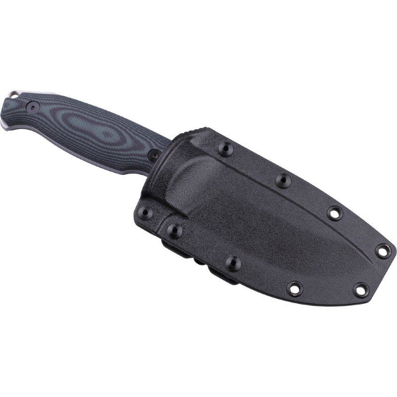 Рукоять виготовлена із скловолоконного композиту G10. Він відрізняється разючою стійкістю і надійністю, але при цьому дивовижною легкістю. Текстурована поверхня матеріалу, а тому він не вислизає навіть з мокрих рук. Досить ергономічна Рукоятка: при роботі забезпечується надійний хват. Пальці надійно захищені від випадкових пошкоджень. Покупець може вибрати два варіанти забарвлення рукояті: чорний з зеленими візерунками або повністю чорний.
