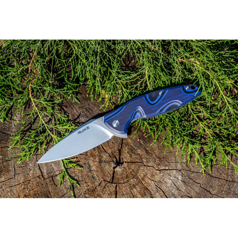 Лезо ножа Ruike P105 виконується з сучасної стали 14C28N Sandvik шведського виробництва. У неї унікальний хімічний склад з великим вмістом вуглецю і хрому. Дана сталь розроблялася спеціально для застосування в клинках. У неї висока твердість (58-60 HRC) і відмінна стійкість до будь-яких видів корозії. Крім того, ріжуча кромка зберігає гостроту дуже довгий час. Ніж утримує в закритому і відкритому положенні фіксатор Liner Lock, який буде виконувати свої функції навіть в грязюці та воді.