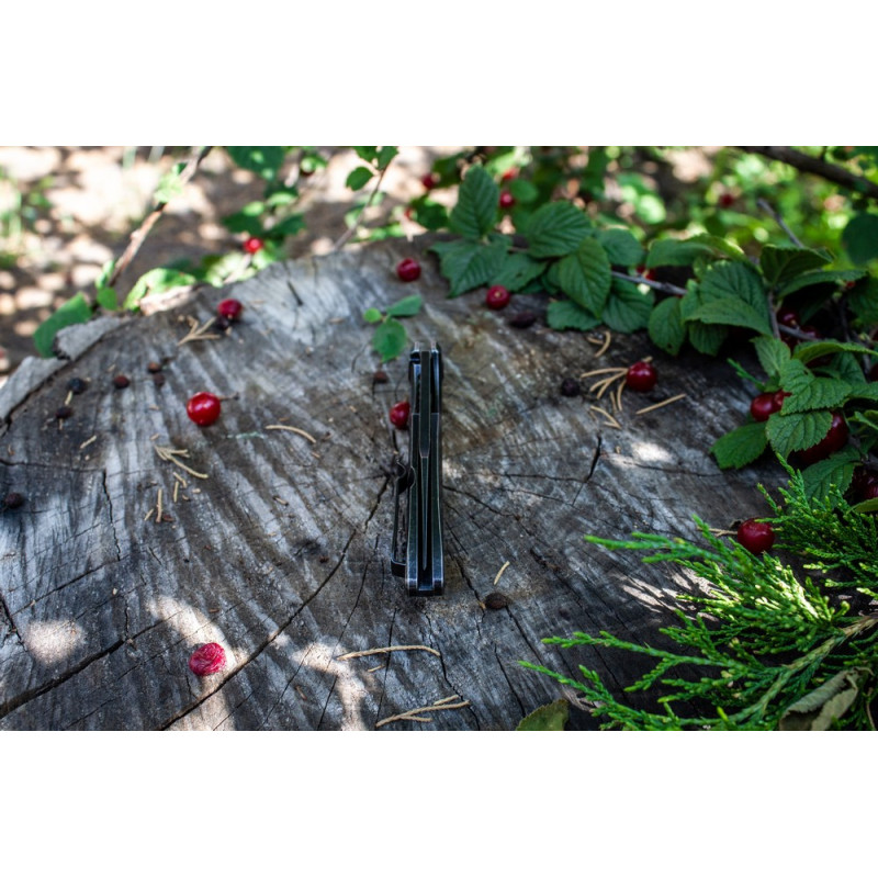 Важливо, що дана модель складного ножа оснащена відразу двома замками. Один з них є основним і визначає положення клинка. Це лінійний по конструкції замок Frame lock. Другий же служить в якості запобіжного елемента на випадок додатки до ножа особливо великих навантажень (він називається Safety Lock).