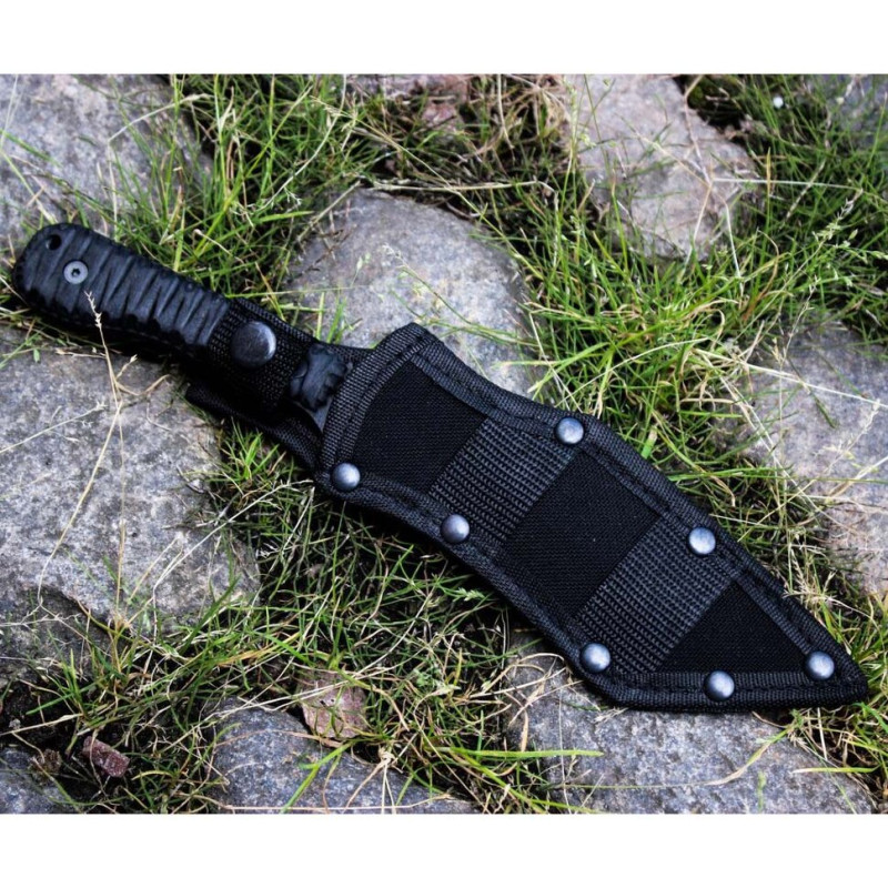 Мала Помста – зменшена копія нашого диверсійного ножа Помста, розроблений для диверсійно-розвідувальних підрозділів і ідеально підходить для застосування в умовах бою. Вістря спеціальної форми з успіхом пробиває і ріже сучасну екіпіровку і військову форму, легко справляється з шкіряними ременями і зимовим верхнім одягом. Різальна кромка гарантує ефективний розподіл сили при колючих ударів. Баланс "на лезо" і кромка трикутної форми розрахована для нанесення силових розрізів. У верхній частині розташований зуб, який дає можливість завдавати дуже сильних рубаючих ударів. Така зброя незамінна в роботі армійських підрозділів, які виходять на прямий контакт з супротивником.