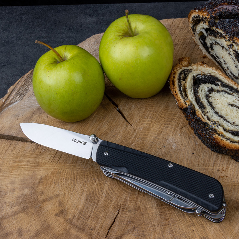 Ніж виготовляється з високоякісних матеріалів, а тому вийшов неймовірно довговічним. Серед додаткових функцій користувач знайде такі: пасатижі, ножиці, два види кусачок, дротяний загин, хрестова викрутка, 3 викрутки з прямим шліцом, штопор, невелику пилу по дереву, шило, гайковий ключ, відкривачку, склобій, відокремлюваний повноцінний пінцет. Розміщені інструменти дуже зручно і надійно – немає ніяких люфтів і працювати кожним з них комфортно.