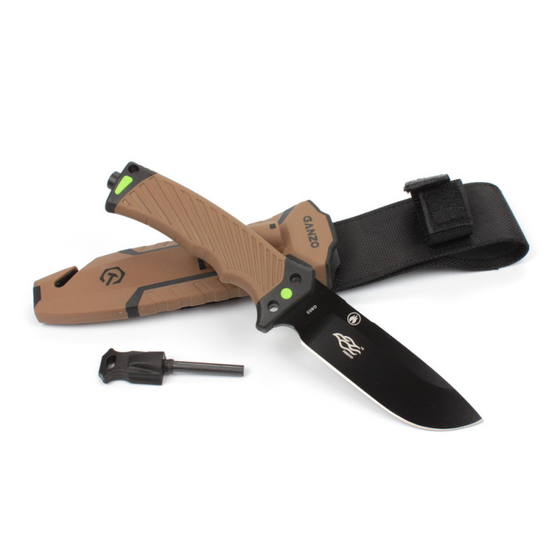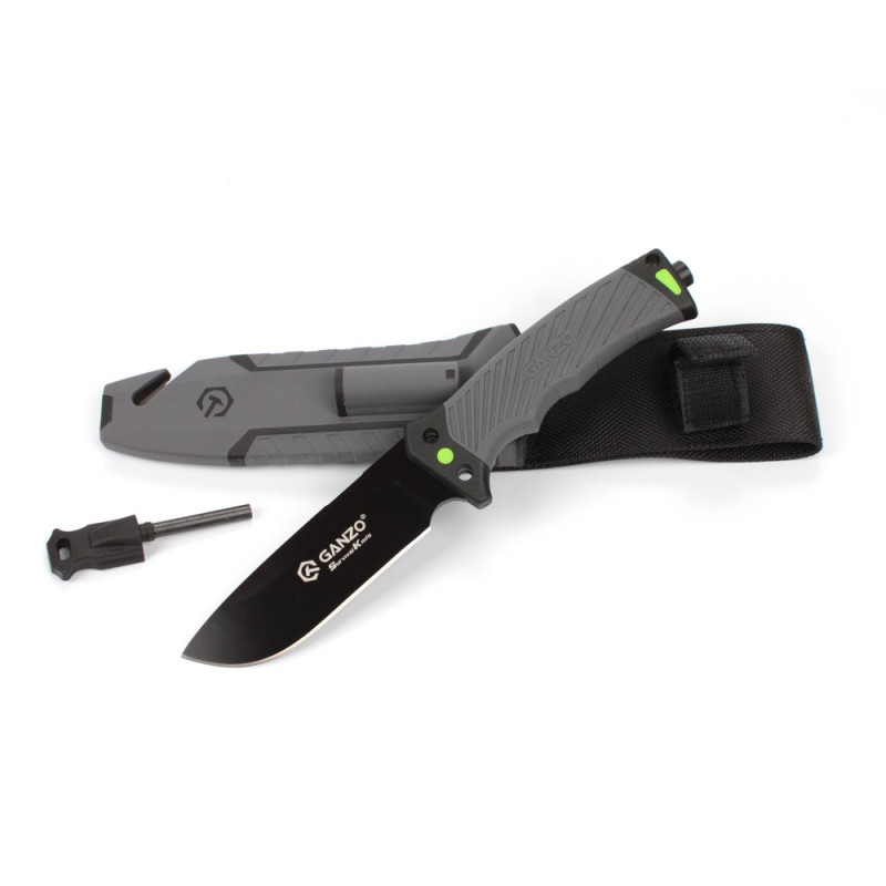 Простий і надійний туристичний ніж Ganzo G803 з фіксованим клинком відмінно підійде для активного відпочинку на природі. Він досить міцний для виконання різних трудомістких завдань і довго залишається гострим. Ці особливості обумовлені застосуванням для виготовлення клинка нержавіючої сталі марки 8Cr13 і його подальшої загартування до ~58 HRC.