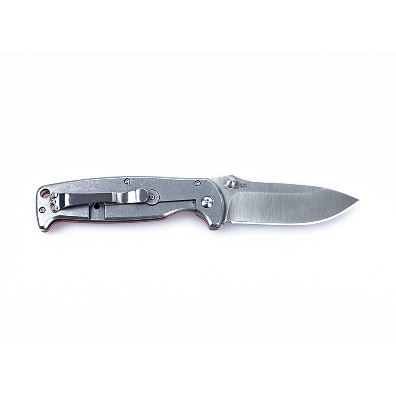 Рукоять цієї моделі ножа привертає увагу незвичайним дизайном. Справа в тому, що накладку з стеклополимера G10 виробники закріпили тільки на одній її стороні. На таку накладку нанесена дрібна накатка, яка дозволяє тримати ножа в руках міцніше. Колір накладок покупці можуть вибрати на свій розсуд з трьох запропонованих варіантів: помаранчевий, зелений і чорний. Із зворотного боку рукоятки всі деталі зроблені сталевими. В тому числі, і кліпса, щоб ніж можна було зафіксувати в кишені або повісити на ремінь.