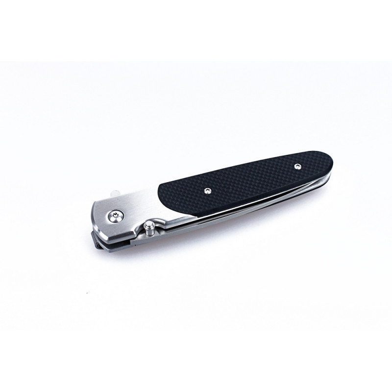 Ніж для туризму Ganzo G743-1 — це практична модель, яка поміститься до будь-якого вашого спорядження. Клинок довжиною 87 мм легко складається всередину рукоятки, завдяки чому переносити ніж стає повністю безпечно. Щоб відкрити його і приступити до роботи, достатньо легко потягнути за шпенек. До речі, у відкритому вигляді лезо легко фіксується і вже не рухається навіть під навантаженням. Цьому сприяє замок Frame Lock — різновид лінійного механізму зі сталевою притискною пружиною, яка одночасно є елементом рукоятки.