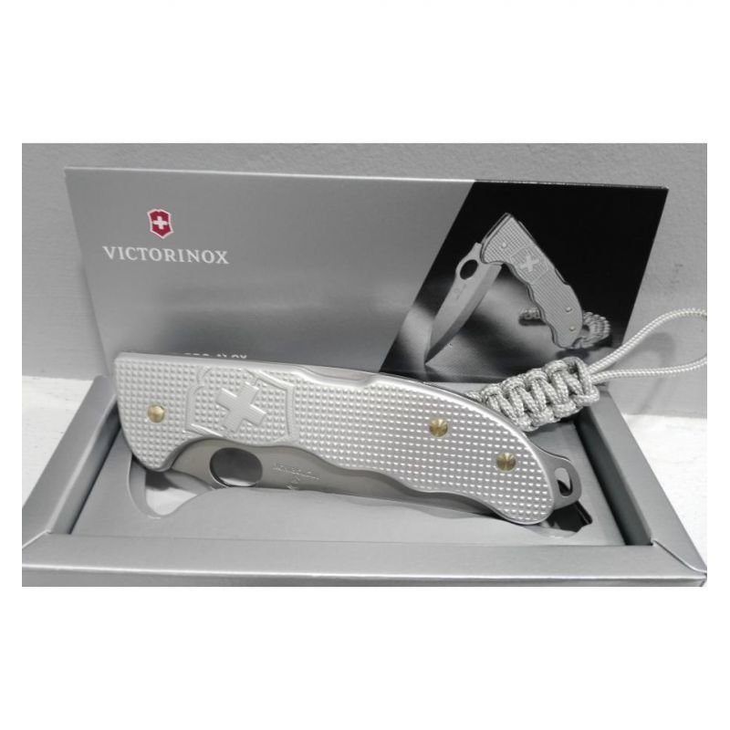 Великий складаний ніж мисливця HUNTER PRO Alox 136мм/4 функції/рифлені сріблясті накладки/однорічний One Hand One Hand/блокування леза Back-lock/кліп для кріплення/темляк з паракорда Victorinox 0.9415.M26 Швейцарія