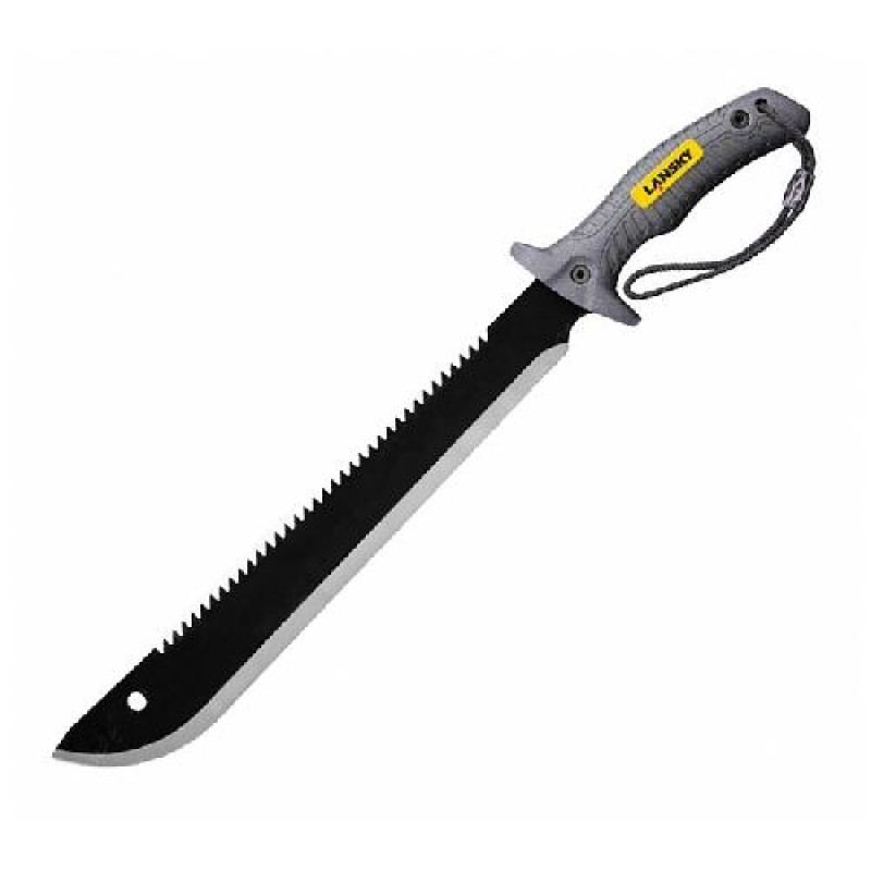 Клинок мачете виконаний з вуглецевої сталі, товщиною 3 мм, поєднує в собі звичайну ріжучу кромку і серрейтор на обуху. Велика зручна рукоять з полімеру Zytel забезпечить надійне утримання, як при рубанні, так і при використанні мачете в якості пилки.