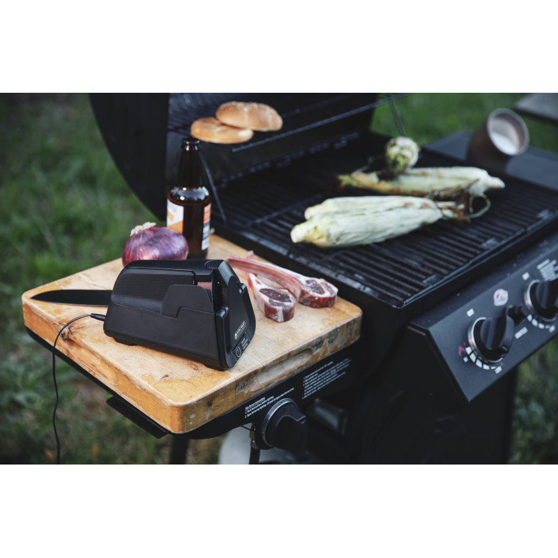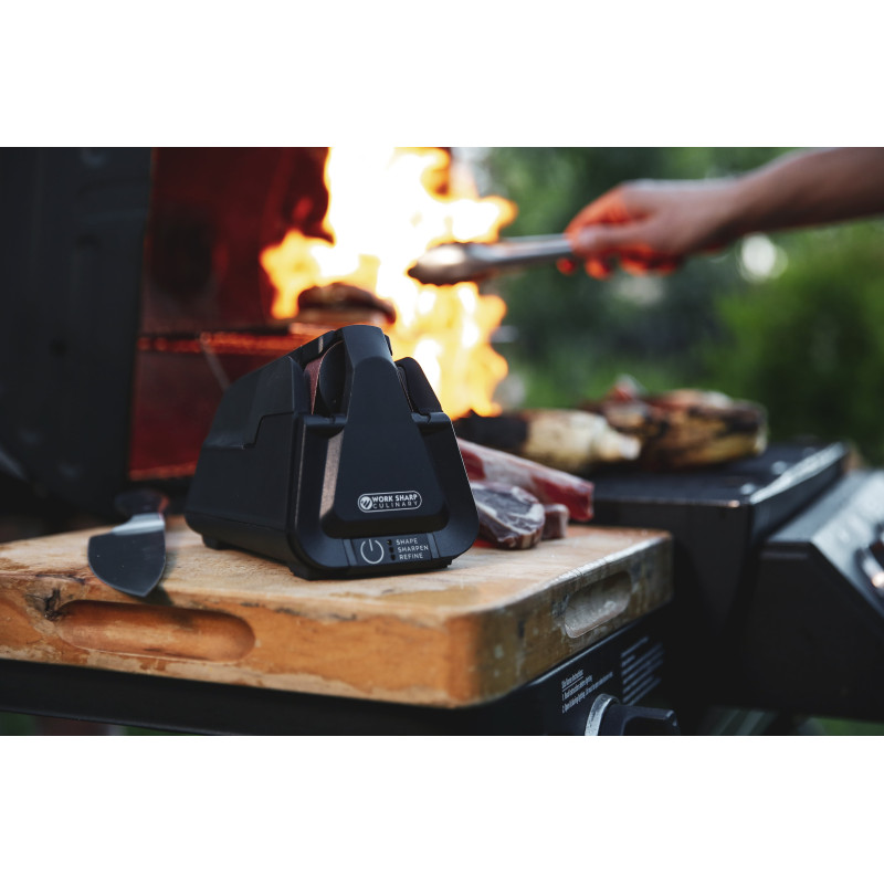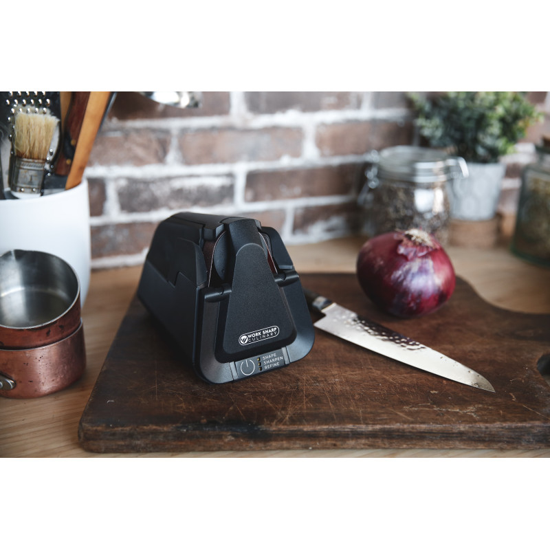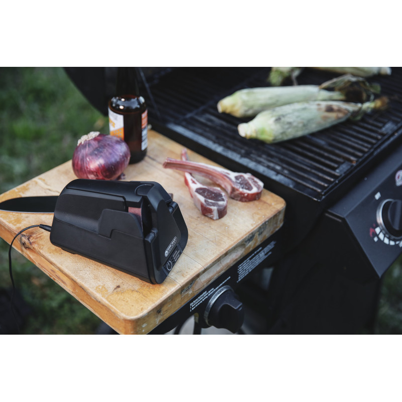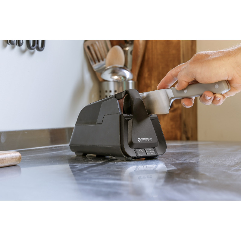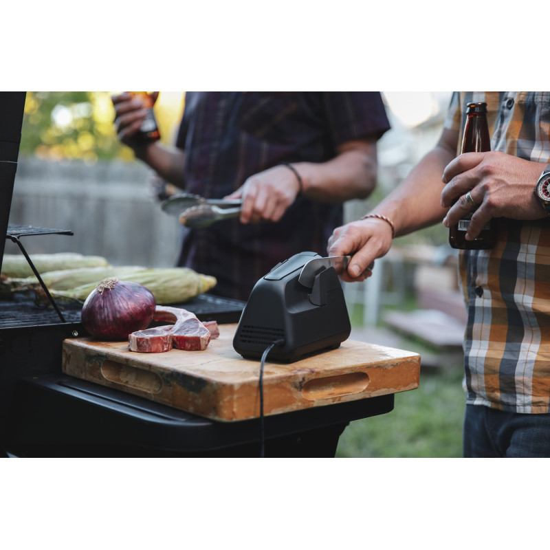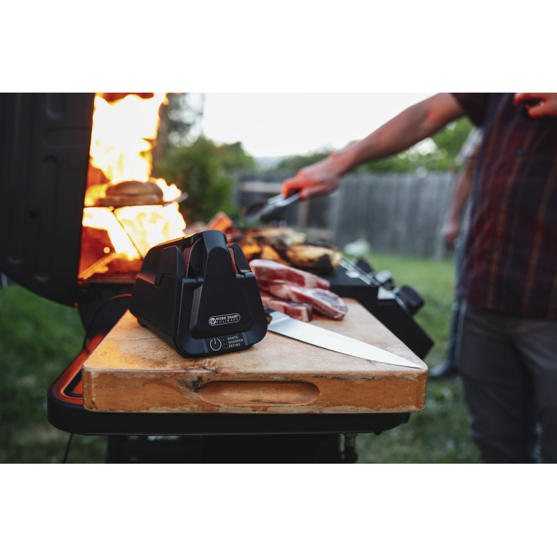 Нещодавно розроблена в гладкому чорному кольорі електрична точилка E4 буде точити ваші ножі так само, як і з застосуванням гнучких заточувальних ременів. Завдяки інноваційним функціям, які включають в себе: програмування одним дотиком, направляючі для заточування на 17° і можливість використовувати всі ножі і ножиці на вашій кухні.Просто увімкніть точило, і вперед! Створюйте постійну геометрію кромок при кожній обробці за допомогою направляючих заточування у 17°. Ви можете розширити можливості підвищення різкості за допомогою комплекту оновлення E5 (напрямні 15° і 20°, продаються окремо). Багатофункціональний дизайн та інноваційна технологія E5 додають простоту і зручність при заточуванні, зберігаючи ваші ножі гострими весь час.