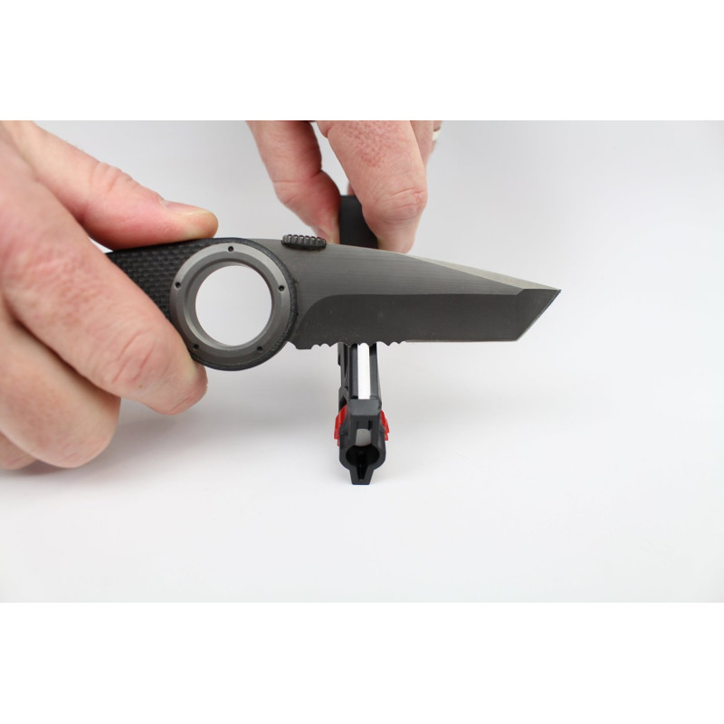 При заточуванні ножа з силуетом клинку не передбачає плавний підйом рк до вістря, наприклад американського танто, ворнклиффа або ножа-стамески, інструкція рекомендує переводити пристрій в режим жорсткої фіксації.