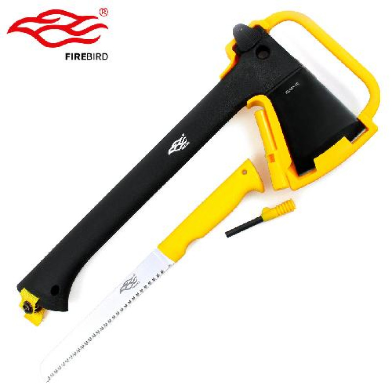 Модель Firebird FSA01-YE орієнтована на тих туристів, які хотіли б мати повноцінний набір інструментів для заготівлі дров на природі, а також можливість в будь-яких умовах розпалити багаття. В комплекті є не тільки сокиру, але і пила, також кресало. Проте всі інструменти настільки вдало скомпоновані, що вони займають мінімальну кількість місця. Пила зберігається всередині ручки сокири, а кресало розміщено в спеціальному відсіку чохла для цього інструмента.
