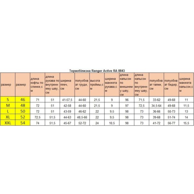 Термобелье Ranger Active XS (Арт.RA 8843XS)