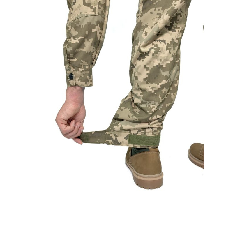 Костюм летний полевой состоит из кителя и штанов. Выполнена из легкой прочной ткани с высоким содержанием хлопка, что делает его использование комфортным даже в самых жарких условиях. Ткань хорошо пропускает воздух, не задерживает влагу, быстро высыхает. На локтях и коленях прошит дополнительный слой ткани, томая форма в этих местах не растягивается.Китель имеет отложной воротничок, застегивается на пуговицы. Манжеты рукавов на пуговицах не регулируются. Спереди расположены 4 больших кармана с застежками-клапанами на липучке.Особенностью этой модели является стяжка по талии, благодаря которой китель может быть более приталенным или прямого силуэта. Именно поэтому эта универсальная модель может использоваться как мужчинами, так и женщинами.Китель имеет специальные участки для крепления шевронов: 2 спереди и по 1 на каждом из рукавов.Брюки под пояс шириной до 5,5 см. регулируются на талии пуговицами. Имеют 4 кармана: 2 косных под ремнем и 2 с застежками-клапанами на липучке чуть выше колена.Регулируются манжетами на застежках-липучках.• Состав ткани – 65 хлопок, 35 ПЭ.• Цвет – пиксель• Размер – 48-50