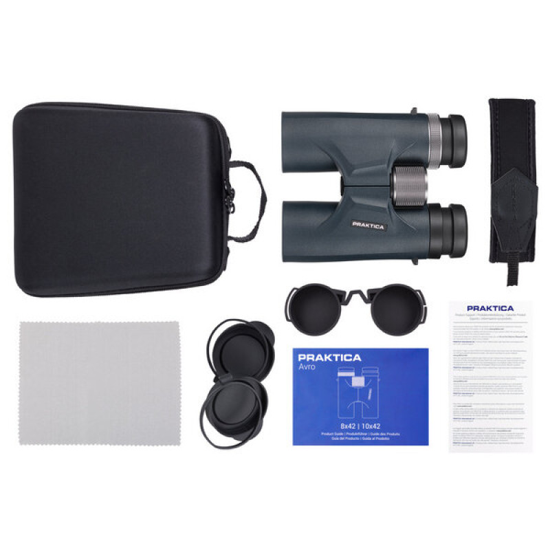 Компанія Praktica стала першою, хто надав офіційну 25-річну гарантію на всю спортивну оптику від бюджетних моделей до моделей преміум класу, в тому числі і на бінокль Praktica Avro 8x42 WP. В першу чергу звертає на себе увагу дизайн цієї серії бінокля. Він стильний і в той же час стриманий, бінокль виглядає як прилад преміум класу і в той же час тут немає нічого зайвого. Колір корпусу так само вельми індивідуальний, причому для цього не довелося вдаватися до яскравої палітрі. В іншому ж це бінокль середнього рівня, який по класу просвітлення, якості скла призм і водозахисту і матеріалами корпусу не поступається більш дорогим моделям виробника. Це оптичний прилад для вимогливого, але не розпещеного мисливця або мандрівника.