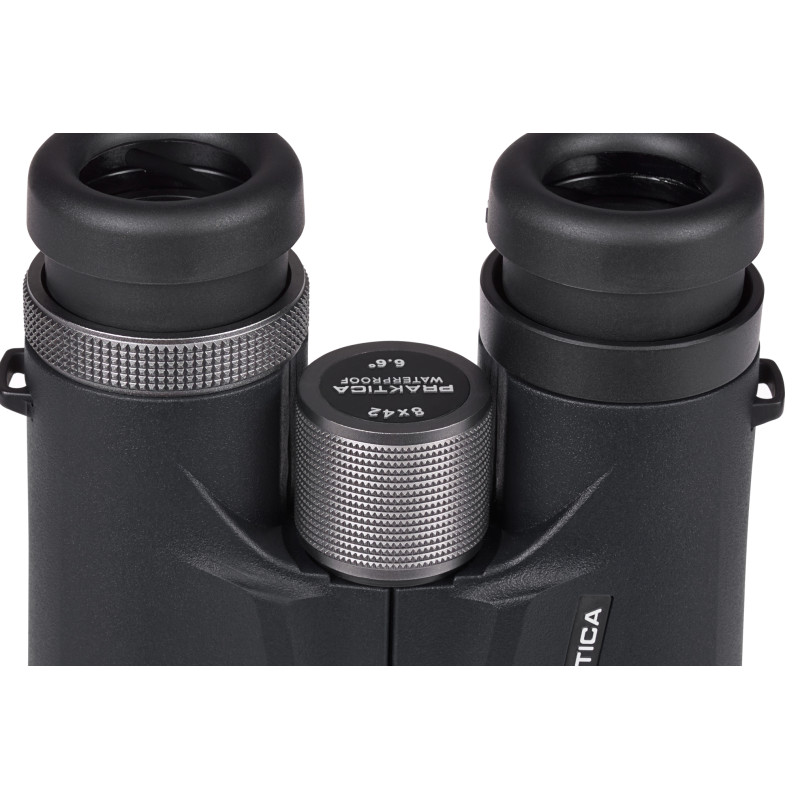 Традиционно резкость изображения настраивается центральным колесом, также предусмотрена возможность диоптрийной коррекции с помощью кольца на правом окуляре, дабы подстроить прибор под индивидуальные особенности зрения. Центральное колесо и кольцо диоптрийной коррекции выполнены в одном стиле и позволяют проводить очень точную регулировку, благодаря большому диаметру и тактильно ощутимой профилированной накатке. Межосевое расстояние корректируется в широком диапазоне. Наглазники фиксируют точку выноса зрачка на расстоянии 18 мм, что позволяет пользоваться данным прибором как в очках, так и без них. Таким образом, бинокль имеет все необходимые регулировки для удобства пользования.