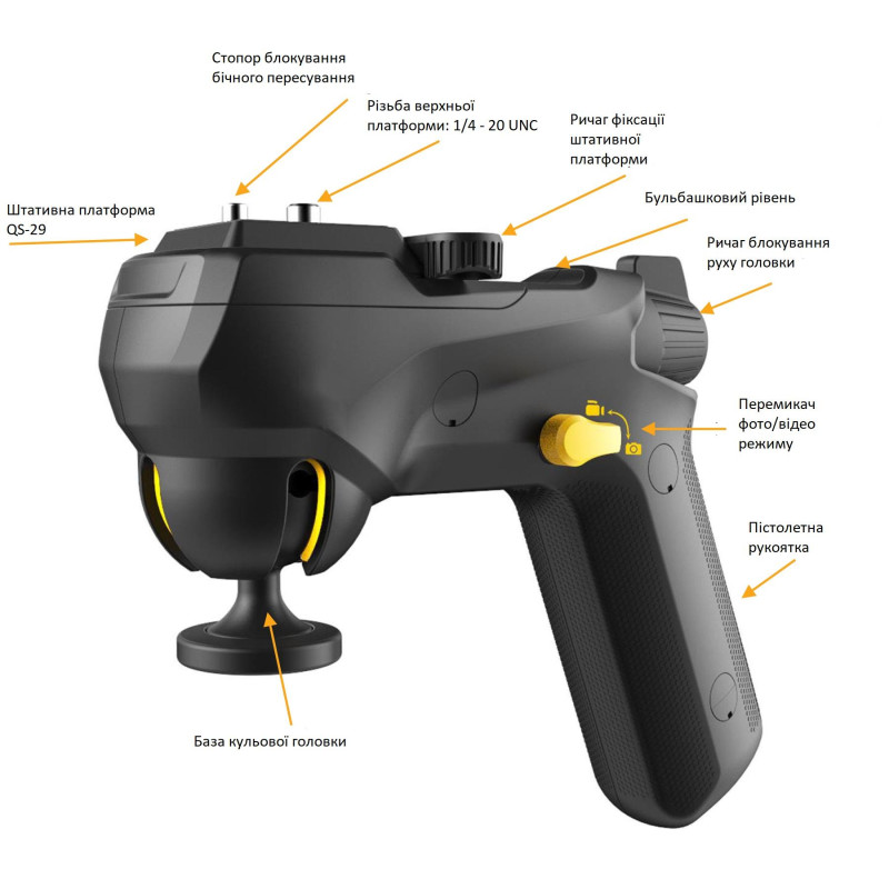 - Рычаг перевода головки из функционала шаровой головки в режим видеоголовки