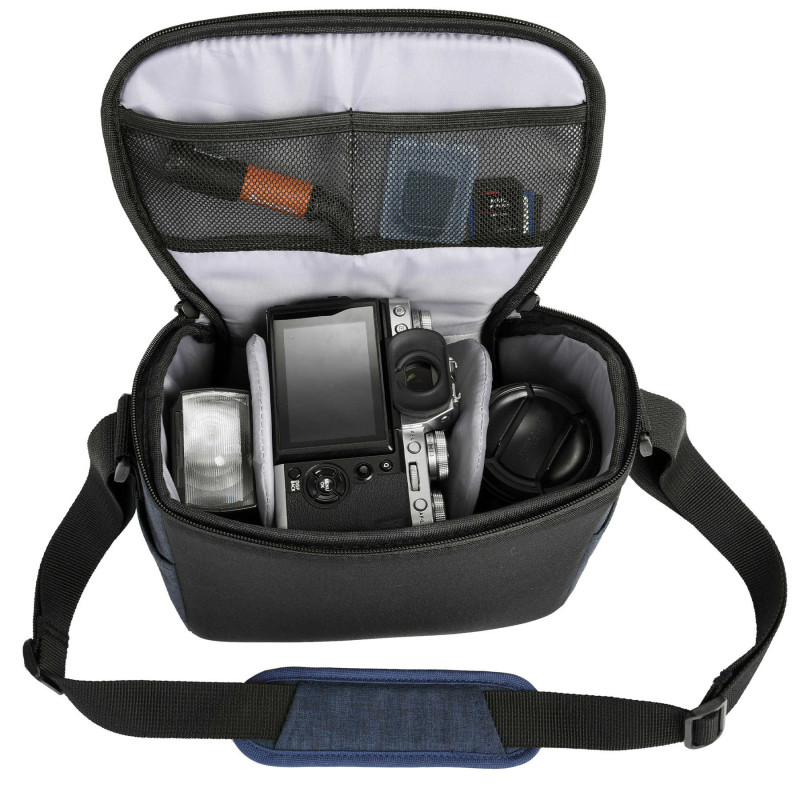 - Общая ориентировочная вместимость: CSC фотокамера или DSLR фотокамера со штатным объективом (18-55mm) - 1 шт, сменный объектив (55-200mm) - 1 шт; фотовспышка (NIKON SB-700/CANON 430EX) - 1шт, настольный штатив (Vanguard Vesta TT1) - 1шт, зарядное устройство - 1 шт, смартфон - 1 шт; аккумуляторы, карты памяти. (реальная вместимость может отличаться в зависимости от габаритов используемого оборудования)