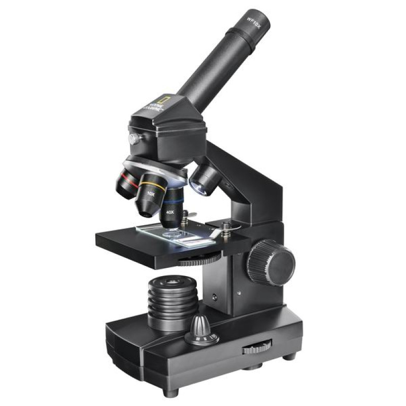 Микроскоп National Geographic 40x-1280x хорошо укомплектованная модель ,биологического микроскопа, снабженная широким набором аксессуаров. Прибор позволяет исследовать достаточно широкий диапазон препаратов и делать собственные маленькие открытия. Главное, что для начала работы не требуется докупать никаких дополнительных аксессуаров. Таким образом микроскоп безусловно будет интересен и детям и подросткам.