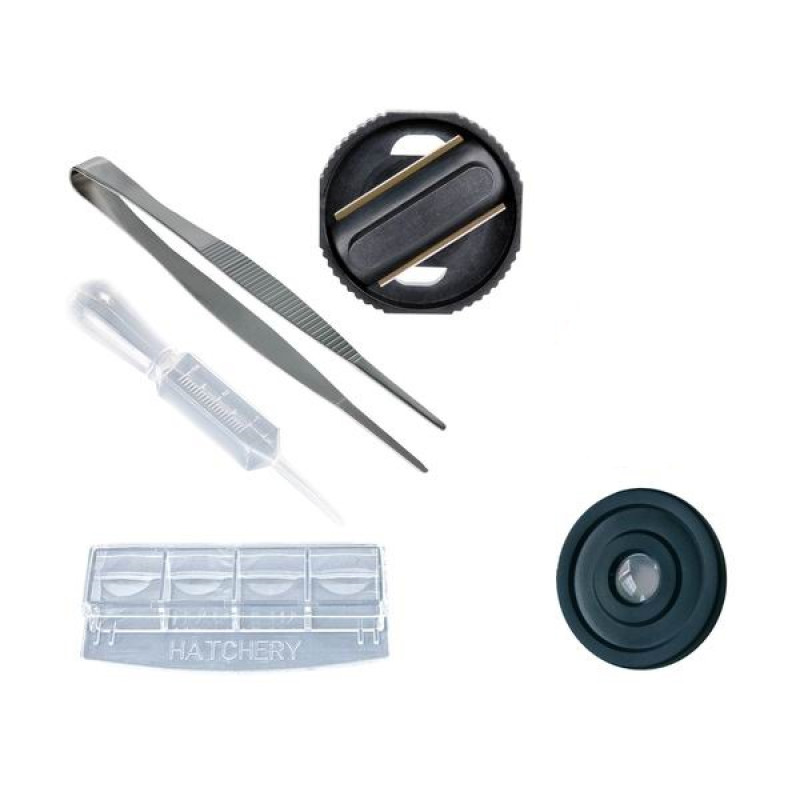 Перечень аксессуаров включает готовые слайды, к осмотру которых можно приступить немедленно. Также в наборе есть аксессуары для препарирования образцов, инкубаторий и все необходимое для выращивания зоопланктона в домашних условиях. Не смотря на то, что данный прибор скорее будет интересен для детей и подростков, все оптические элементы выполнены из стекла, серьёзное увеличение позволит рассмотреть практически всё, что доступно взрослому биологическому микроскопу.