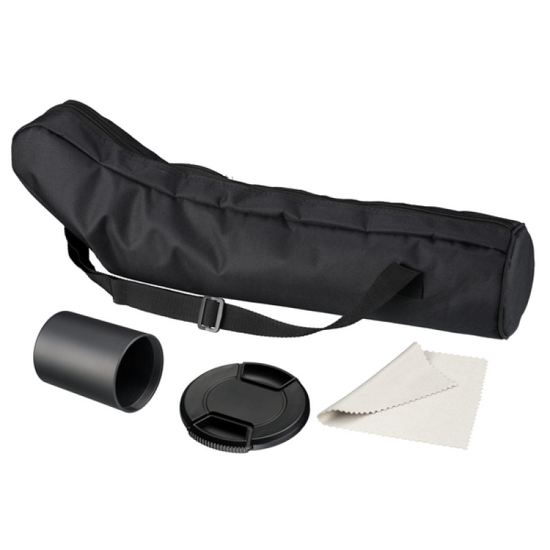 Утолщенное резиновое покрытие черного цвета надежно защищает прибор от повреждений и обеспечивает надежный захват подзорной трубы рукой. Для максимального комфорта наблюдения окуляр установлен под углом 45º. В комплект поставки входит настольный штатив-тренога для полевых наблюдений. Труба поворачивается в хомуте на 340º для достижения наиболее удобного угла наблюдений. Для удобства транспортировки и хранения можно использовать износостойкий нейлоновый чехол на замке.