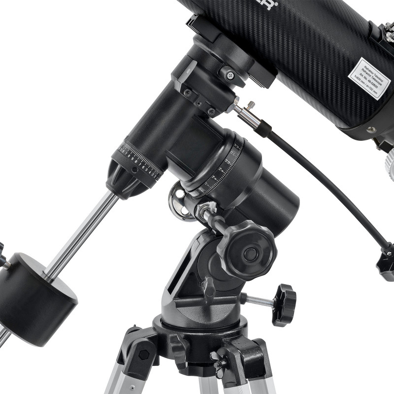 Телескоп установлен на жесткой монтировке EQ-3 - экваториальной, немецкого типа. Монтировка оснащена механизмами тонких движений по обеим осям. Благодаря использованию червячных передач в механизмах тонких движений возможна моторизация монтировки (и установка системы автонаведения). Координатные круги позволяют наводить телескоп на объекты с использованием системы экваториальных координат.