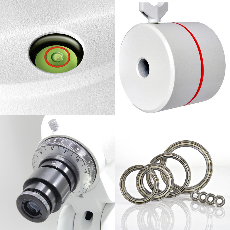 Экваториальная монтировка телескопа с механизмами тонких движений позволит легко совершать наблюдения за суточным движением объектов по небосклону. В конструкции монтировки использованы шариковые подшипники осей и червячные передачи, что способствует плавному, точному движению и длительному сроку службы. Монтировка снабжена искателем полюса для точной настройки телескопа, что особо важно при астрофотографировании. Крепление "ласточкин хвост" удобно для использования с комплектной монтировкой и позволяет устанавливать трубу на большинство других распространенных экваториальных монтировок. Тренога имеет пузырьковый уровень для удобства установки в горизонтальном положении. Благодаря компактным размерам, телескоп весьма удобен для перевозки или для установки в малых домашних обсерваториях. Благодаря комплектации трубы диагональным зеркалом, данную модель с успехом можно использовать для ландшафтных наблюдений и ДиджиСкоппинга (фотографирования с помощью трубы и фотокамеры)
