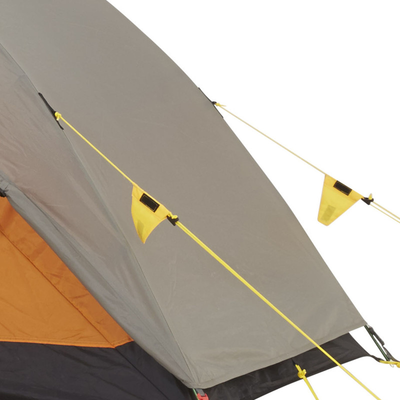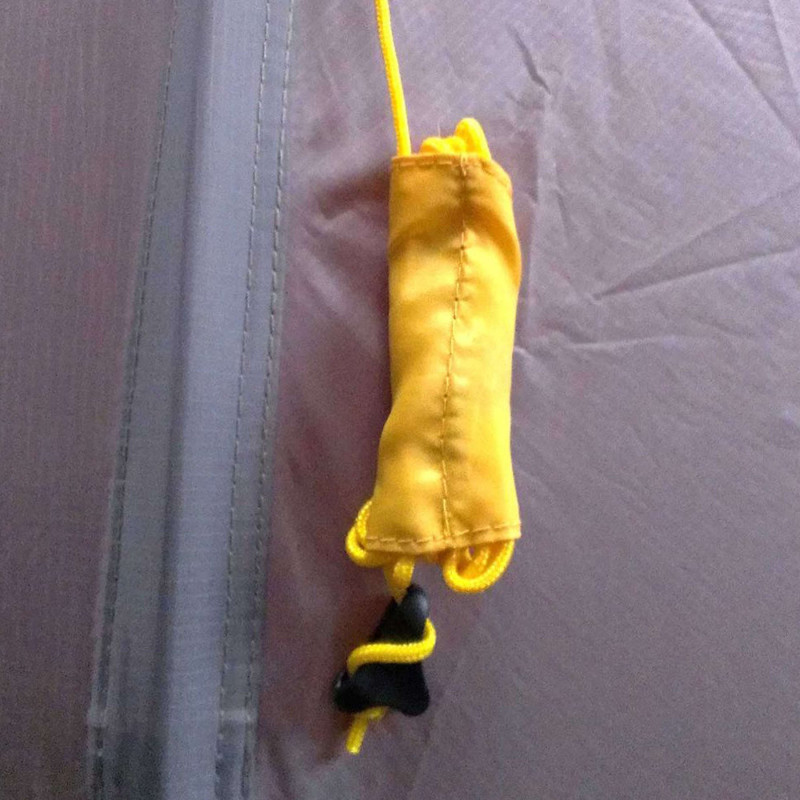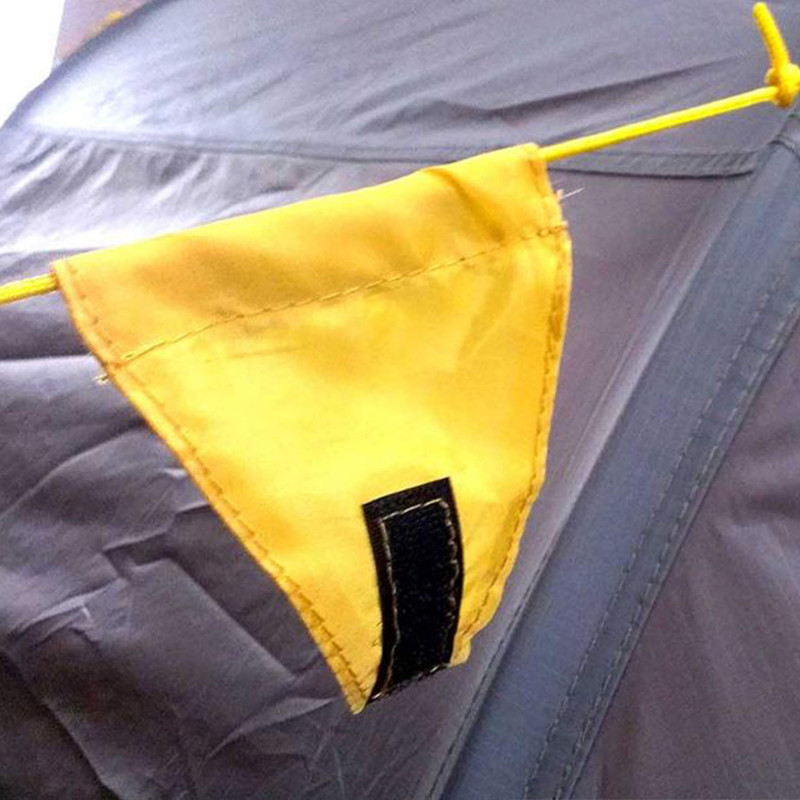 Этот аксессуар имеет двойное назначение. Во-первых, яркие флажки позволяют в разы увеличить видимость штормовых оттяжек, и не повредить их при подходе к ним. Кроме того флажки позволяют решить вечную проблему распутывания оттяжек, отнимающую время при установке. Перед складыванием палатки достаточно быстро свернуть оттяжку, обмотать ее флажком и зафиксировать текстильной застежкой Velcro (липучкой). При следующей установке палатки аккуратно зафиксированные оттяжки легко и быстро могут быть приведены в рабочее положение, или оставаться аккуратно свернутыми, если в них нет необходимости.