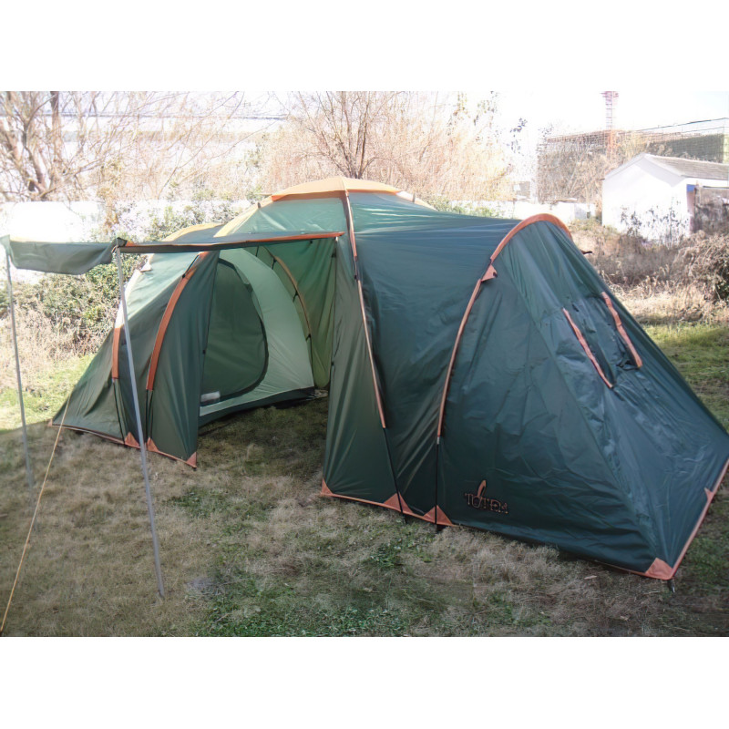 - Двошарова конструкція намету з установкою дуг каркаса безпосередньо в зовнішній тент, дозволяє використовувати намет як тент без обов'язкової установки житлових кімнат