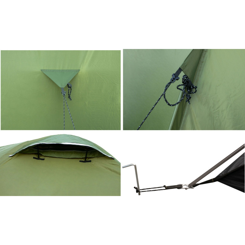 - Два вентиляційних клапана відкриваються зовні і зсередини намету.