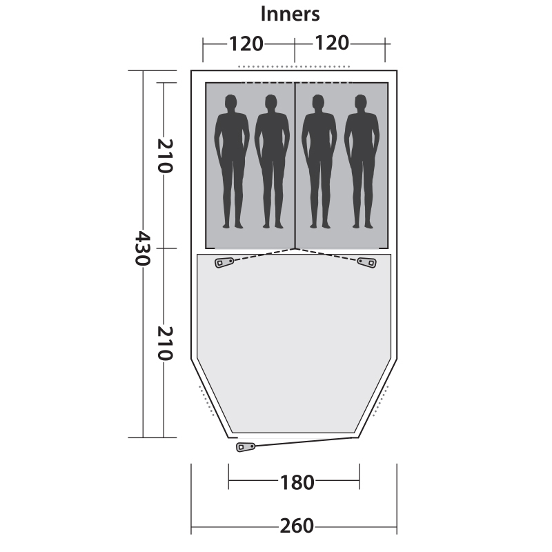 • Затемненные стены и потолок внутренней палатки уменьшают проникновение света, что способствует хорошему сну.