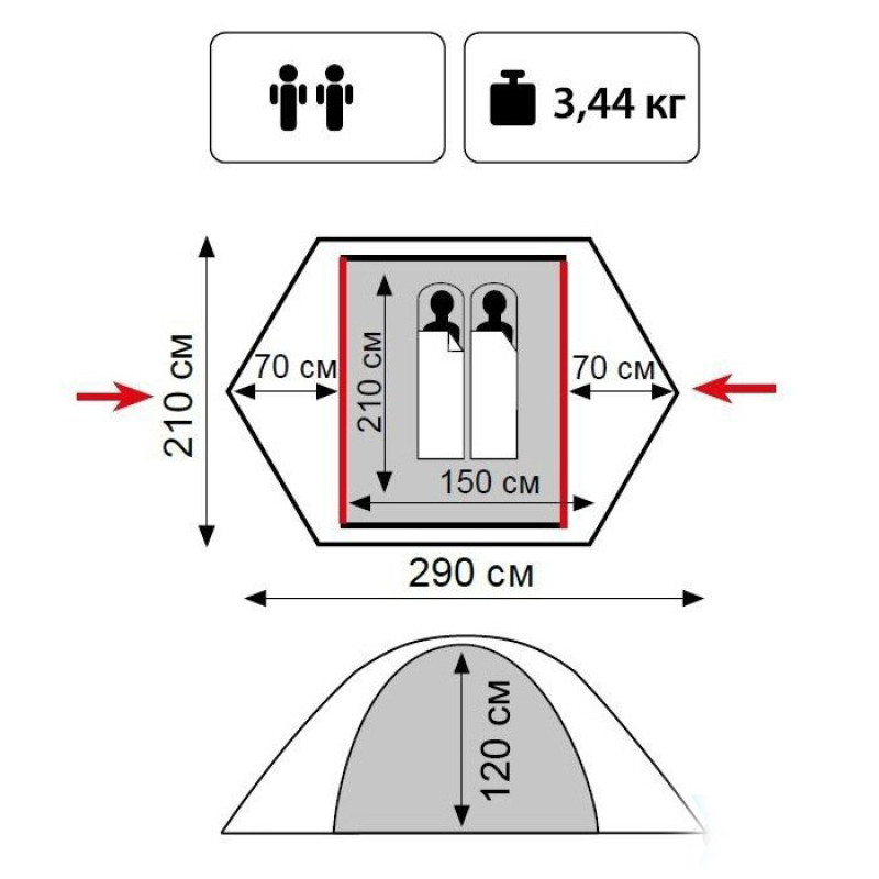 • Два окремих входи, що дозволяє зайти і вийти з кожного боку не обходячи весь намет
