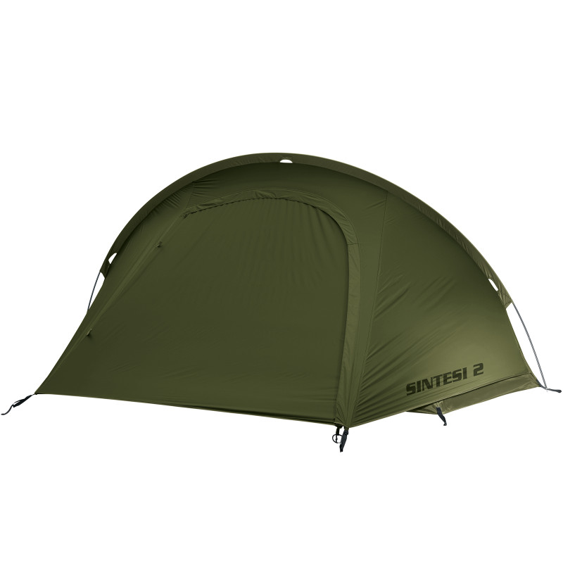 Ferrino Sintesi 2 Olive Green относится к серии палаток Ferrino Lite и является действительно одной из самых легких двухместных палаток. Ее вес в полной комплектации составляет всего 800 грамм в расчете на человека. Данная модель имеет повышенную до 8000 мм вод. ст. водонепроницаемость дна палатки и наиболее подойдет для соревнований по парному легкоходному туризму, непродолжительных походов и велотуризма. Туннельная конструкция всего с одной дугой обеспечивает минимальный вес и минимальное время установки и сборки. При всей своей компактности, палатка имеет вмместительный тамбур. Водозащита внешнего тента составляет 3000 мм вод. ст., что вдвое превышает нормативные требования к водозащитным палаткам и вполне хватает, чтоб сохранить палатку внутри сухой во время дождя средней интенсивности. Палатка имеет два вентиляционных окна и вход, дополнительно закрывающийся москитной сеткой, таким образом эффективное проветривание осуществляется без проблем и и ночевка в летнюю жару не вызовет дискомфорта.