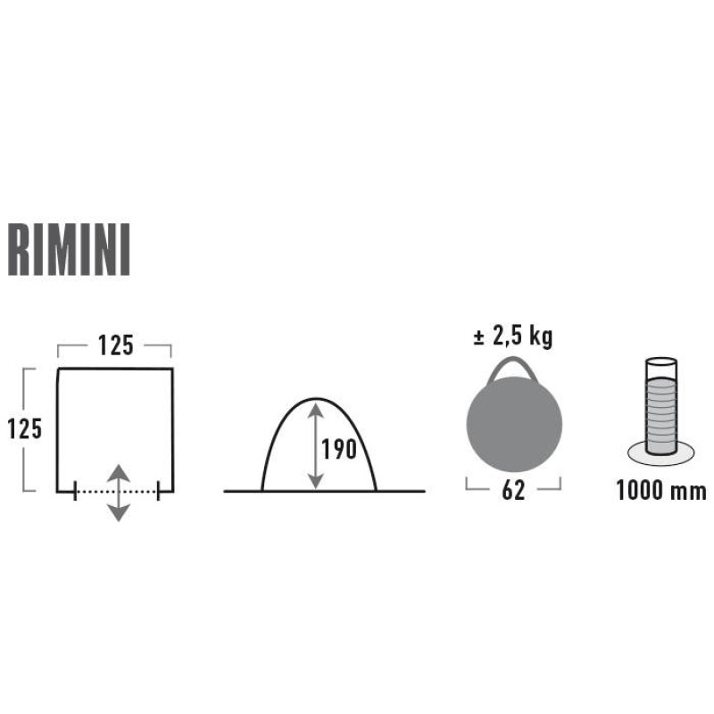 Многофункциональная палатка High Peak Rimini может быть использован в качестве раздевалки, душевой кабинки или туалета. Каркас изделия изготовлен из пружинных стальных дуг. Изделие занимает минимум места, вход закрывается на двухстороннюю молнию, установка тента не занимает много времени, выполняется очень быстро и легко.