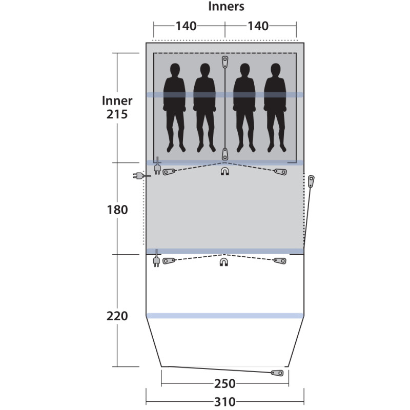 - Dark Inner - темная ткань внутренней палатки уменьшает проникновение света для улучшения качества сна.
