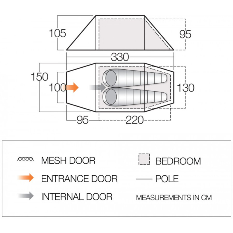 • Материал покрытия: Protex® 70D (Polyester), 3000 мм в.ст., проклеенные швы. Разработан эксклюзивно для Vango