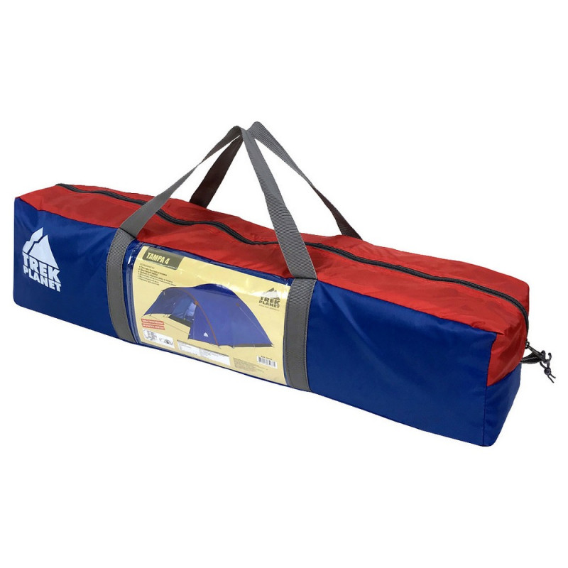 Намет чотиримісний Trek Planet Tampa 4, синій (20048220070115) - оригінальна, надійна модель, яка стане незамінною в похідних умовах. Представлене туристичне спорядження відрізняється наявністю великого і просторого тамбура, в якому можна не тільки зберігати речі, але і облаштувати місце для прийому їжі, встановивши похідний столик. Москітна мітка на вході, забезпечить надійний захист від настирливих комах, а верхній водонепроникний тент від дощу, вітру і сонячних променів. Усередині намету зручно розташовані кишені для дрібних речей, а також місце для підвішування ліхтаря. Дана модель монтується швидко і легко, економлячи Ваш час для облаштування ночівлі в похідних умовах. Намет - є відмінним варіантом для любителів кемпінгу, велотуризму, а також простого відпочинку в лісі або на березі водойми.