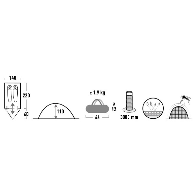 High Peak Kingfisher 2 LW Pesto/Red (10339) - легкая однослойная двухместная купольная палатка с алюминиевым каркасом, весит всего 1,9 кг и поражает небольшим размером упаковки. Гибкие и прочные дуги изготовлены из высококачественного алюминиевого сплава 7001 Т6, гарантируя высокую устойчивость к ветровым нагрузкам. Сверхлегкие и прочные алюминиевые колышки надежно закрепляют палатку к земле. На экстремально жестком грунте или деревянной платформе палатку можно закрепить камнями. Четыре больших петли идеально удерживают камни, чтобы палатка держалась на земле. Наружный тент водостойкостью 3000 мм вод. ст. изготовлен из высококачественного полиэстера с полиуретановым покрытием и имеет водонепроницаемые швы. Эту однослойную палатку можно установить быстро и без труда благодаря самонесущей конструкции. Тамбур имеет дополнительное пространство для хранения снаряжения, а большая верхняя вентиляция обеспечивает оптимальную циркуляцию воздуха. Вход с сетчатой дверью увеличивает поток воздуха в палатке и предотвращает проникновение насекомых. Палатка оснащена практичной сетчатой полкой для мелких вещей и креплением для фонаря. High Peak Kingfisher 2 LW Pesto/Red (10339) рассчитана для двоих человек, а также имеет дополнительное место для хранения трекингового снаряжения. Это отличная палатка для катания на велосипедах, мотоциклах, каноэ и для разбивки лагеря в дикой природе.