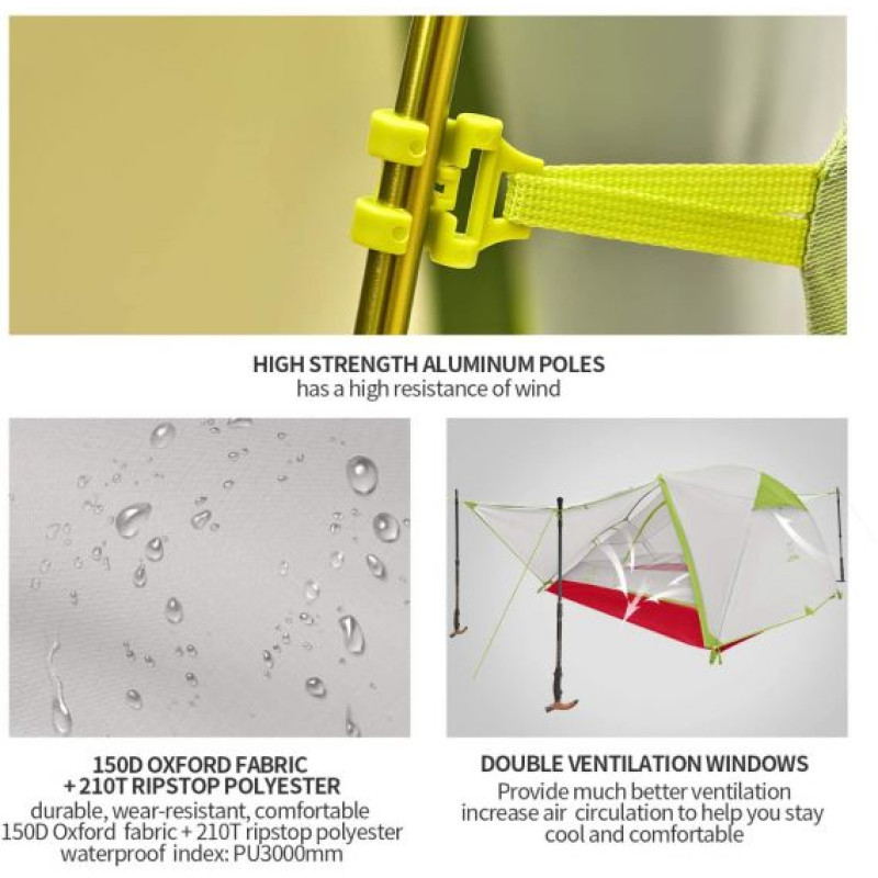 Трехместная.Ультралегкая палатка которая обеспечит Вам комфортный отдых в любую погоду. Вам комфортный отдых в любую погоду. Так же может послужить как пончо или москитная сетка.Алюминиевая конструкция, двухслойная. Наружный тент 210T silicone coating polyester rip stop 3000 mm PU. Пол 150D oxford 3000mm PU вес 2,9 кг