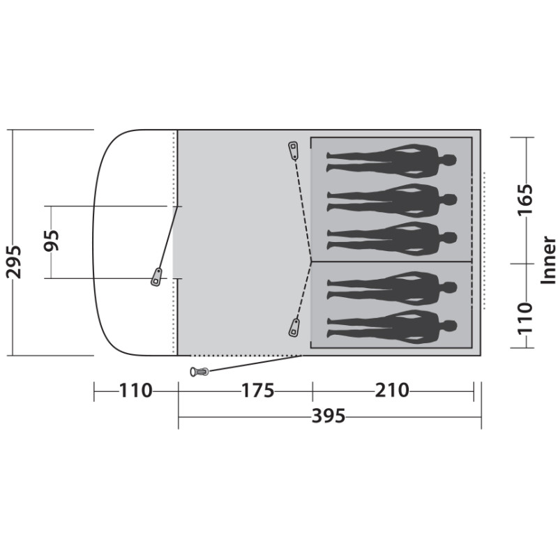 - Затемненные стены и потолок внутренней палатки уменьшают проникновение света, что способствует хорошему сну.