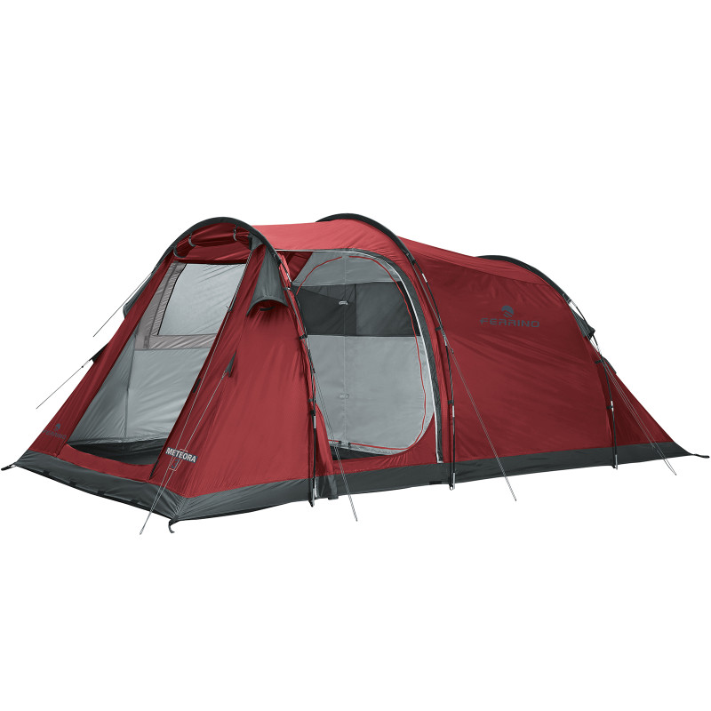 Палатка Meteora 3 Brick Red относится к серии семейных палаток Ferrino и будет интересна для любителей кемпинга, путешествующих пешком или на общественном транспорте, так как ее относительно небольшой вес позволяет носить палатку за плечами. Несмотря на небольшой размер, эта модель имеет два широких входа, два окна и вместительный тамбур, где можно обустроить обустроить дополнительные спальные места на надувном матрасе, либо поставить пару стульев для отдыха. Четыре вентиляционных окна, и наличие москитной сетки дверей внутренней палатки и внешнего тента гарантируют комфортный микроклимат без насекомых в палатке. Умеренная высота палатки, обтекаемость формы и двухточечные крепления штормовых оттяжек обеспечат необходимый запас надежности при порывах ветра. Учитывая двухслойную конструкцию и наличие пола по всему периметру палатки, степень водозащиты вполне достаточна, чтоб, при правильной установке, сохранить палатку внутри сухой во время дождя. Чехол палатки закрывается на молнию, что очень удобно при упаковке палатки. Палатка может быть дооборудована приставным тентом Ferrino Canopy Grey.