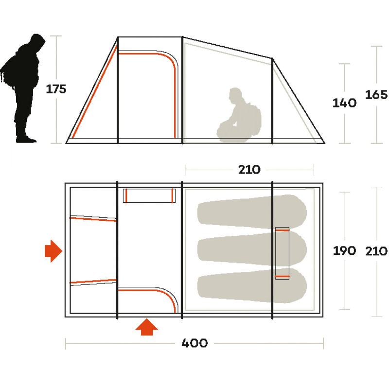- Внешняя палатка (ДхШхВ), мм: 4000 х 2100 х 1750