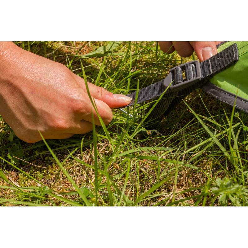 TBS®II Tension Band System - запатентированная система от Vango, обеспечивает устойчивость палатки в неблагоприятных условиях, особенно при сильном переменчивом ветре. При натяжении ленты фиксируют дугу в 3-х точках и уменьшают поперечное смещение. Отрегулируйте TBS®II, чтобы устранить провисание. Не перетягивайте, так как это может деформировать дуги. Можно убрать в безветренную погоду.