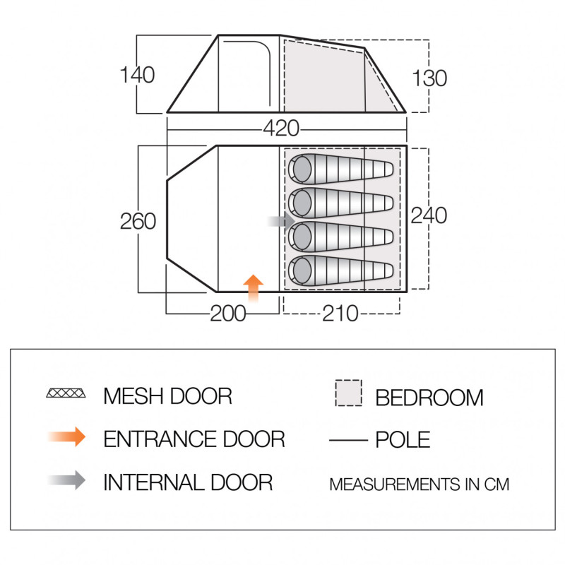 Fully Wind & Rain Tested - палатки Vango прошли погодные испытания в соответствии со стандартом EN ISO 5912. Эта палатка подходит для использования в сырую погоду. Следует избегать штормов и экстремальных погодных условий.