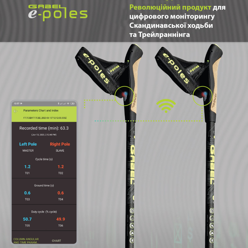 E-Poles - революционное изобретение, созданное компанией Gabel для цифрового мониторинга важнейших параметров во время занятия скандинавской ходьбой и трейлраннингом. Это первые в мире электронные цифровые палки, способные выступать не только в роли необходимой экипировки для сандинавской ходьбы, но и оценить физическую активность во время занятий и эффективность выполнения упражнений.