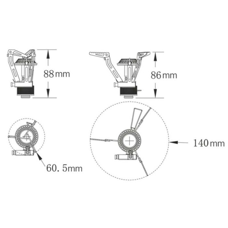 • Компактна доладна пальник зроблений зі сплаву алюмінію і нержавіючої сталі, забезпечує хорошу підтримку.