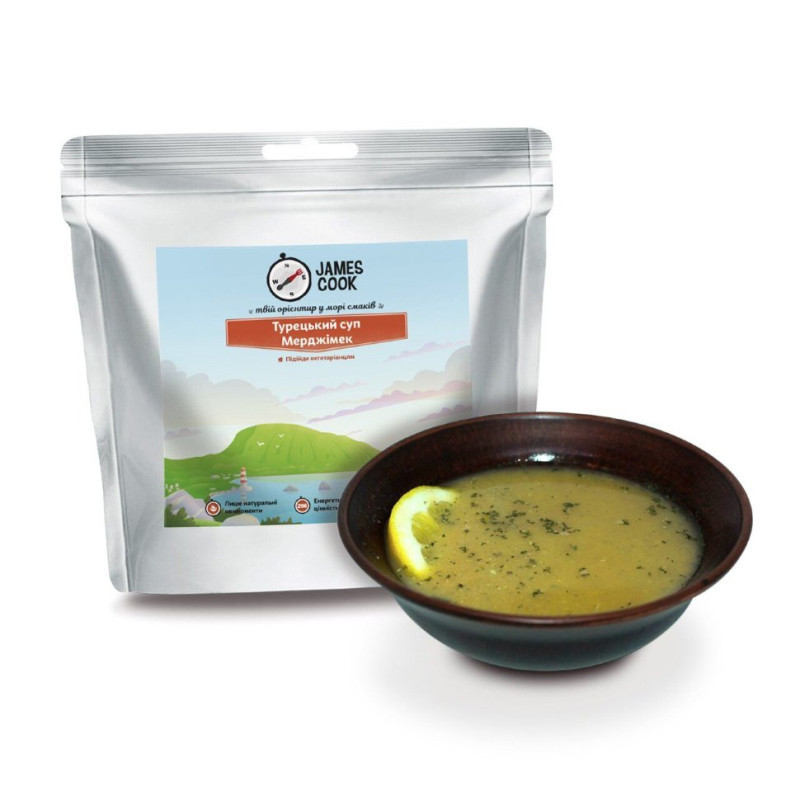 Чечевица (по английски lentil) – растение семейства бобовых. В пищу используется в виде семечек, котрые характеризуются выоким содержанием белка. Чечевица – одно из первых окультуренных человечеством растений. Во время рскопок на Ближнем Востоке были найдены чечевичные семечки возрастом 8000 лет. Чечевица очень популярна в Турции и других странах Переднего Востока. Турецкий суп Мерджимек по консистенции крем-суп. В этом блюде ощущаются легкие мятные нотки, а для исключительности вкуса мы добавили в него несколько долек лимона. Если вы искали чем бы рабавить однообразие походой раскладки – суп мерджимек это именно то что вам нужно !При приготовлении используются только натуральные компонеты без красителей и усилителей вкуса. Походная еда James Cook приготовлена путем сушки готовых продуктов, и именно по этому ее вкус точно такой же как и блюд, приготовленных дома.