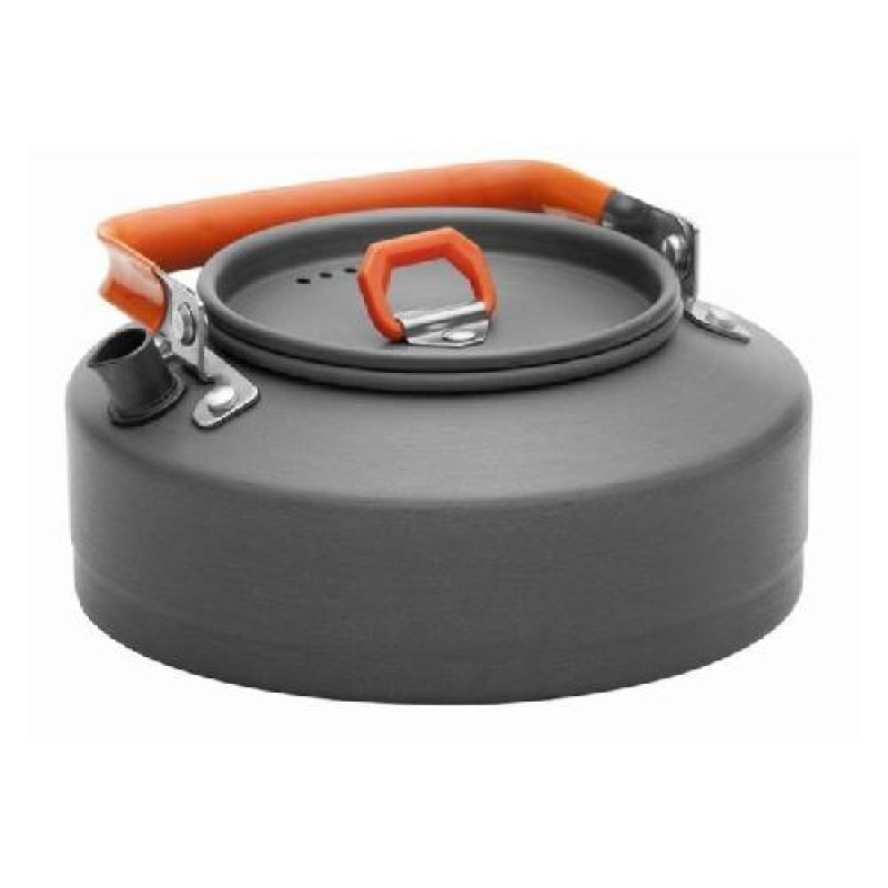 Яскравий чайник цікавого дизайну Fire-Maple FMC-T3 зроблений з анодованого алюмінію. Ручка чайника і ручка кришки має водовідштовхувальні елементи для збереження вашої безпеки від опіків. Кришка чайника має пароотводящие отвори. Носик чайника з направляючою виїмкою, для точного наливання окропу. Чайник компактний, міцний, легко миється.
