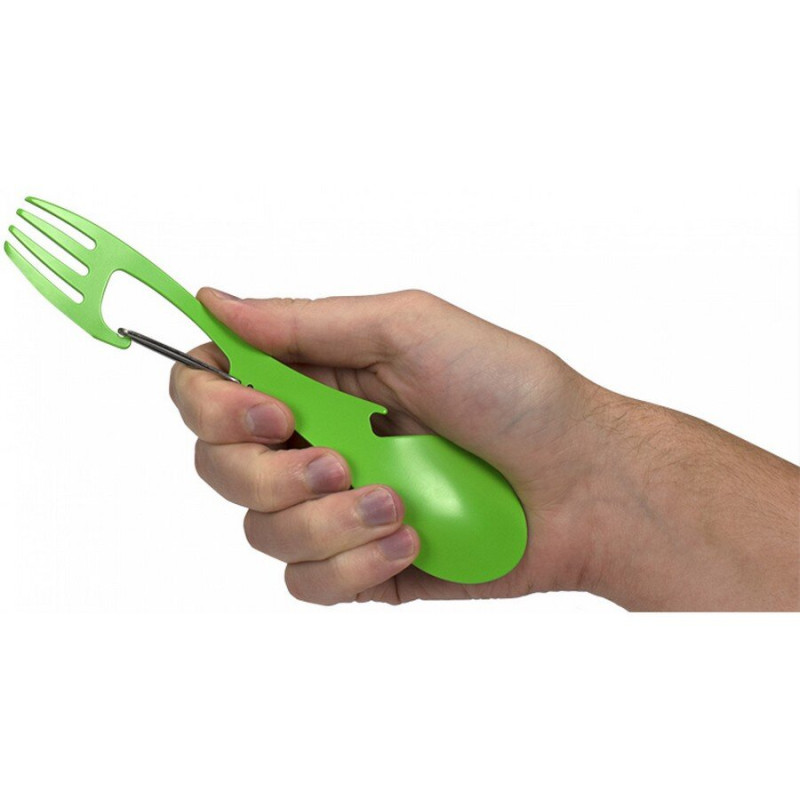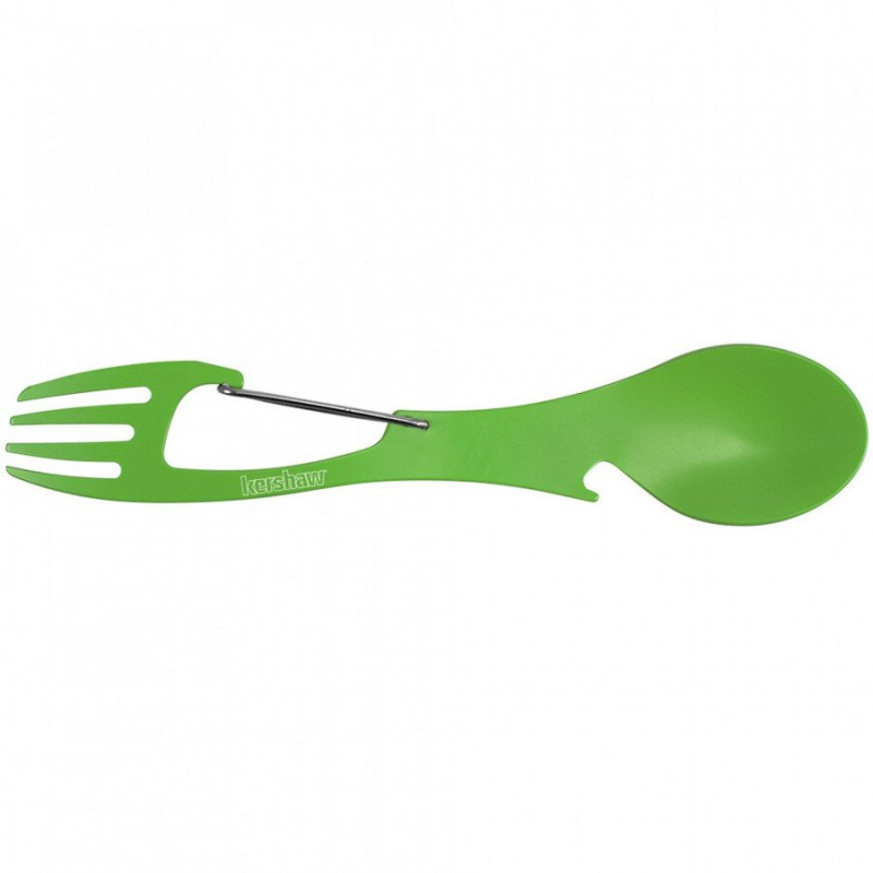 Ловилка Раціон Кершоу є незамінним інструментом для туристів, мандрівників і всіх, хто практикує готування на свіжому повітрі. Цей компактний столовий прилад поєднав у собі вилку, ложку, відкривачку для пляшок і карабінне кріплення, вмістивши все це в розмір брелока. Kershaw Ration виготовлений з нержавіючої сталі з довговічним фінішним покриттям зеленого кольору.