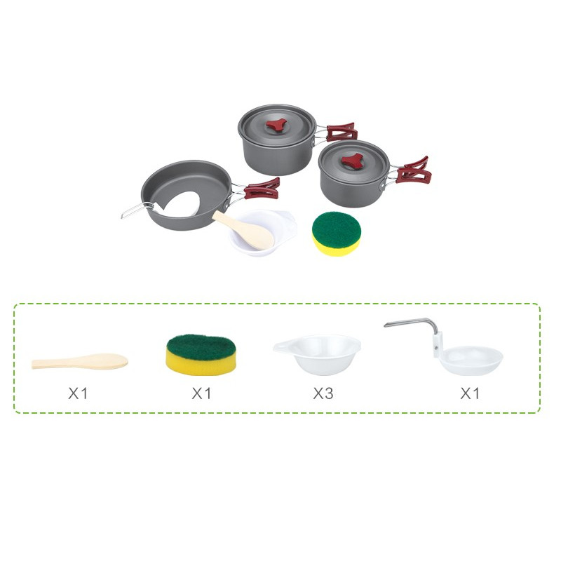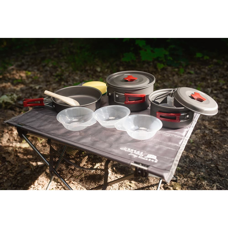 Набір посуду компактних розмірів, призначений для використання в туризмі. Процес приготування їжі на відкритому повітрі буде легким, швидким та приємним. Оптимально для використання невеликою компанією з двох-трьох чоловік. У комплект включені три ємності, ополоник, ложка, губка для миття посуду. Все це дуже зручно для експлуатації в польових умовах. Також передбачений чохол для зберігання і перенесення виробів.
