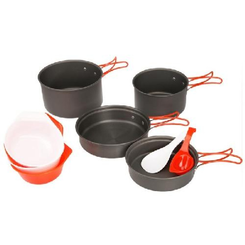 Набір поставляється з сітчастим нейлоновим мішечком для транспортування і зберігання. Вага 710г. Розрахований на 2-3 чоловік.