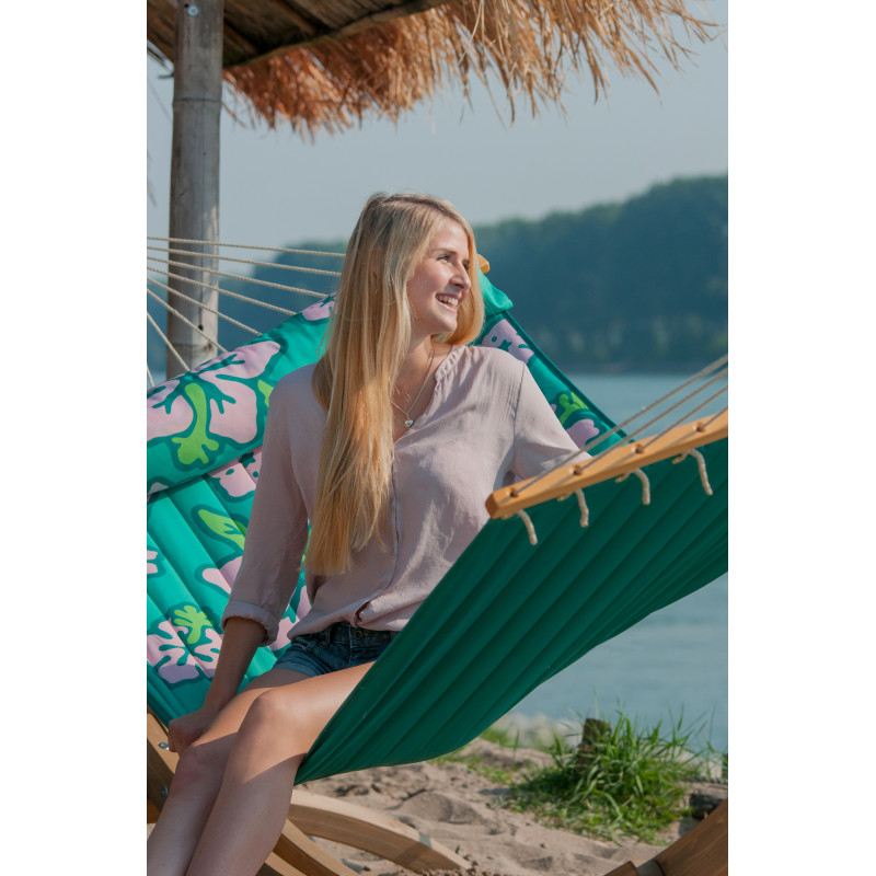 Гамак передаёт красоту южных морей, независимо от того, где вы захотите его подвесить. Подвесной гамак Hawaii в рэтро-стиле 50-х годов с классическим растительным мотивом передаёт неповторимый дух Гавайских островов. Встроенная подушка и мягкое пространство для лежания, снабжённое подкладкой, обеспечивают непередаваемые ощущения при отдыхе в гамаке. Итак, вдохните поглубже, закройте глаза и представьте себе тёплое южное море!
