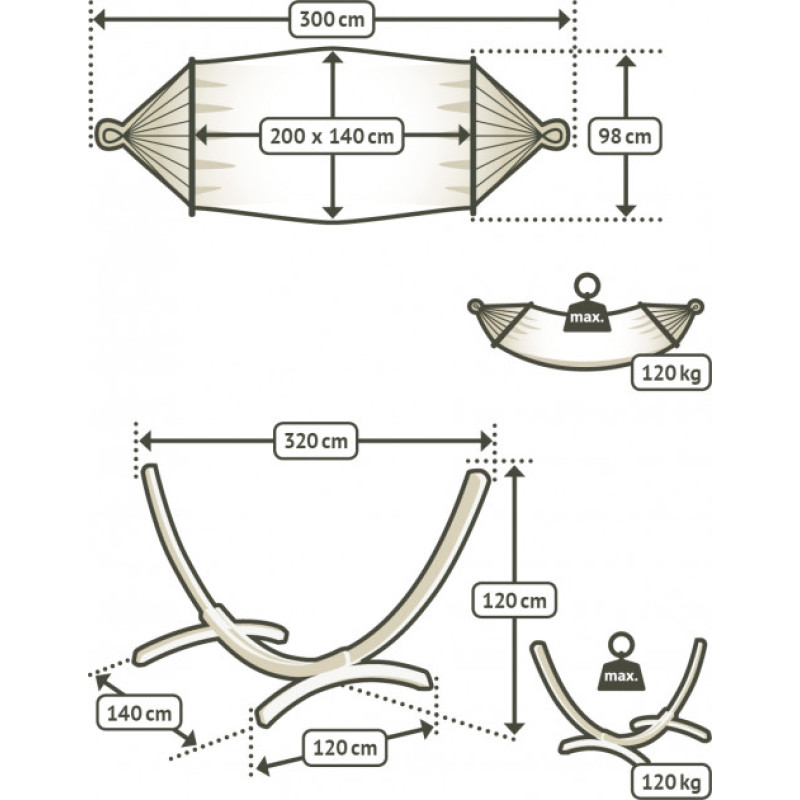 Функциональное волокно было специально разработано для особых требований наружных гамаков. Материал прост в обслуживании, быстро сохнет и защищен от атмосферных воздействий.